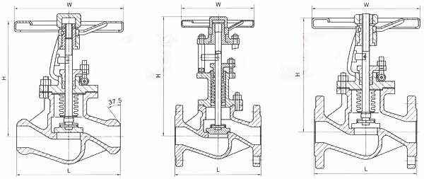 国标波纹管截止阀 主要外形尺寸